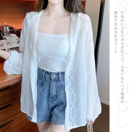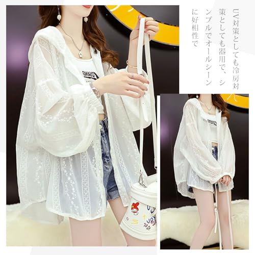 [Vincent house] カーディガン レディース 薄手 長袖 冷房対策 花柄 刺繍 ゆったり シースルー UVカット 日焼け 着痩せ おしゃれ 通勤 春 夏 秋