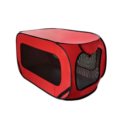 オックスフォード生地 犬小屋 室内ペットケージ3面防塵と通気性犬 ケージ 折り畳み小型犬と中型犬に適したポータブルドッグクレート 3色(Red)