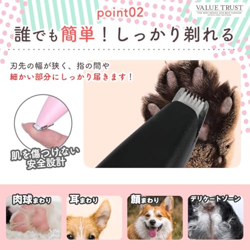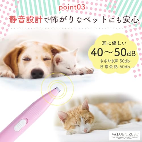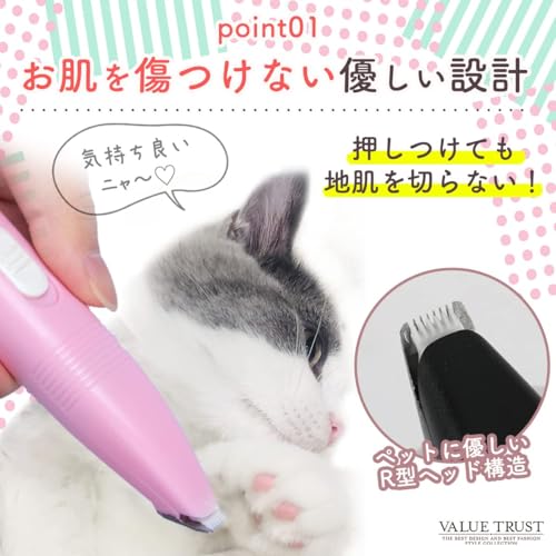 VALUE TRUST ペット用 バリカン 犬 猫 小型 軽量 静音 足裏 肉球 顔回り ひげ 部分カット トリミング 小動物 電池式 コードレス 初心者 プロでも使える Pink ピンク