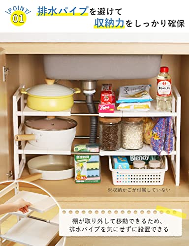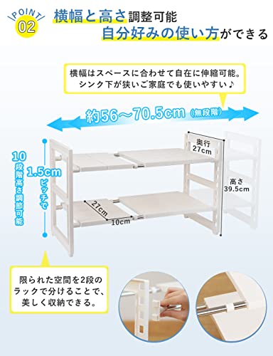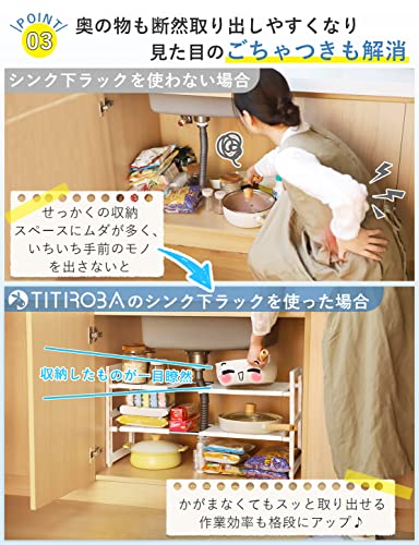 【整理収納アドバイザー推薦】 チチロバ(TITIROBA) シンク下 収納 ラック 伸縮 2段 簡単組立 シンク下伸縮棚 キッチン 収納 棚 洗面台下 フリーラック ホワイト 幅56-70.5×奥行27.5×高さ39.5cm
