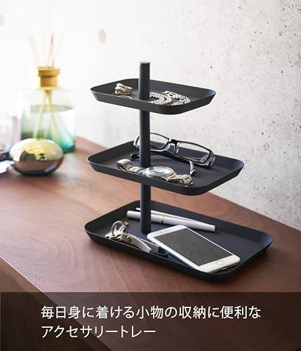山崎実業(Yamazaki) アクセサリー 3段 トレー タワー ブラック 約W24.7XD15.7XH25.7cm タワー 小物入れ アクセサリー収納 4725