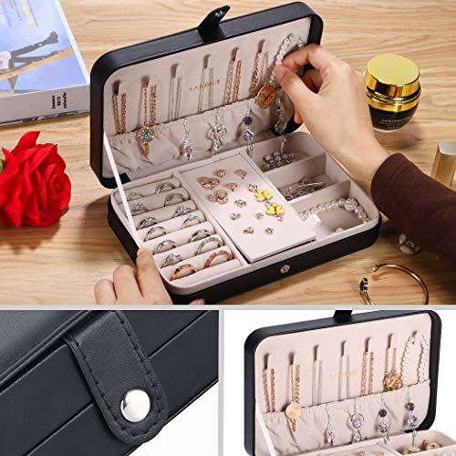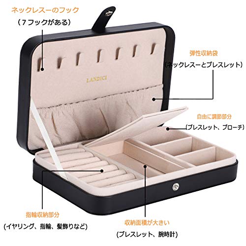 LANDICI ジュエリーボックス PUレザージュエリーケース ジュエリーボックス 指輪置きジュエリー収納ケース 携帯用 持ち運び 仕切り付き宝石箱 jewelry box organizer じゅえりーぼっくす ネックレス イヤリング ピアス ブレスレットなど小物入れアクセサリー ボックス メンズ 女性 女の子用 ブラック