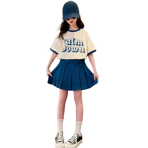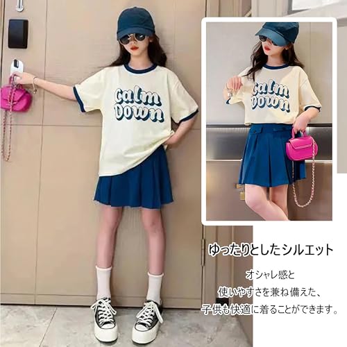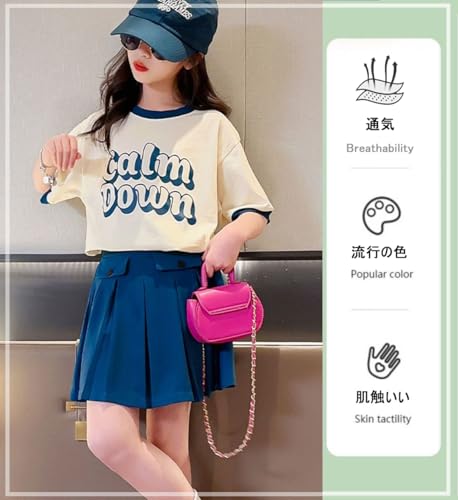 [Banlan] 女の子 子供服 セットアップ スカート 半袖 シャツ 2点セット 上下 夏 キーズ スポーツ 可愛い スウェットセット 韓国 英字柄 学園風 通園通学 120-170cm