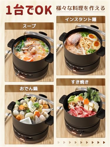 - 【卓上に置いて使いやすい一人鍋】1.0L容量の深鍋が外せるからそのまま皿として食卓へ。一人暮らしに便利な1〜2人用。小型で低電力なので、アウトドアポットとして使用でき、車中泊、キャンプ、旅行にでも、温かくてヘルシーな食べ物をすることもできます。