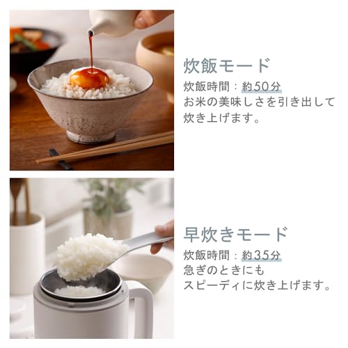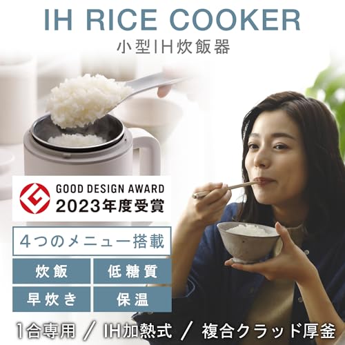 【 仕様 】■電源:AC100V■定格消費電力:400W■製品寸法:幅169 x 奥行 127 x 高さ228 mm( ふた、釜なし:幅169 x 奥行127 x 高さ195 mm )■質量:約1.3kg (内釜、電源コード含む)■カラー:ブラック■保証期間:1年間■付属品:内釜、ザル釜、計量カップ、しゃもじ■安全装置:あり(温度異常検知)■搭載機能数:4メニュー■搭載機能:炊飯、低糖質、早炊き、保温■炊飯容量:炊飯:0.09 ~ 0.18L(1/2 ~ 1 合)、早炊き:0.09 ~ 0.18L(1/2 ~ 1 合)、低糖質:0.09 ~ 0.135L(1/2 ~ 3/4 合)■炊飯時間:炊飯:約50分、低糖質:約50分、早炊き:約35分 ※目安。実際の時間は環境温度などによって前後することがあります。■加熱方式:IH電磁誘導式■保温機能:あり(最大12時間)■内釜:アルミ・ステンレス鋼材、フッ素樹脂コーティング【 説明 】■高火力のIH式による少量炊飯を実現した、1合炊きに特化したコンパクトな小型IH炊飯器です。 ■1~2人前にぴったりな、1合炊き専用サイズの内釜を採用。少量でもお米の美味しさを感じられる炊き上がりを実現します。 ■素早い温度上昇と安定した沸騰状態の維持が得意なIHを採用し、お米本来の甘みを引き出します。 ■アルミとステンレスを合わせた、4層からなる独自の「一合厚釜」を採用。釜の内側はフッ素樹脂コーティング、外側には耐熱塗装を施し、お手入れしやすく耐久性に優れています。 ■食卓のさまざまなシーンで活躍する、炊飯・低糖質・早炊き・保温の4つのメニューを搭載しています。 ■操作部がハンドル形状のため、持ち上げやすいのが特長。移動・収納時に便利です。 ■場所を取らない縦型のコンパクトタイプです。狭いテーブルやデスクの上でも使いやすく、2台目としての利用にもぴったりです。 ■低糖質メニューを搭載。付属のザル釜を使うことで、糖質を約20%抑制します※。 ■※炊飯モードで炊飯したごはん100gの糖質量と、低糖質モードで炊飯したごはん100gの糖質量を測定(自社調べ。測定は(一財)日本食品分析センターによる)し、数値をもとに算出。 ※本製品は疾病の治療、予防を目的としたものではありません。 ※カット率は銘柄や米の保存状態、水加減によって変わります。 ■早炊きメニューなら約35分でスピーディーに炊飯できます。 ■※炊飯時間は環境温度などによって前後することがあります。 ■毎日の暮らしに溶け込む、LiFERE独自のカラーリングとシンプルなデザインです。 ■炊飯後は自動で保温モードに切り替わり、12時間の保温が可能です。 ■ふたは取り外せる形状で、丸洗い可能。清潔に保てます。 ■便利な計量カップ付きです。無洗米も計量できます。 ■スリムな釜からもご飯をよそいやすい、専用のしゃもじ付きです。 ■LiFEREブランドサイトにて小型IH炊飯器にぴったりのレシピを公開しています。ぜひ合わせてご覧ください。【商品に関するお問い合わせ】エレコム総合インフォメーションセンターTEL. 0570-084-465FAX. 0570-050-012受付時間 / 10:00~19:00 年中無休