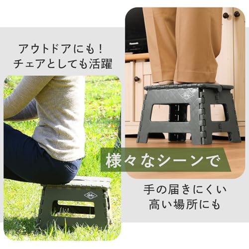 不二貿易(Fujiboeki) 折りたたみ椅子 踏み台 ステップ 幅32.5×奥行25.5×高さ22cm カーキ アウトドア コンパクト スツール 耐荷重150kg 86073