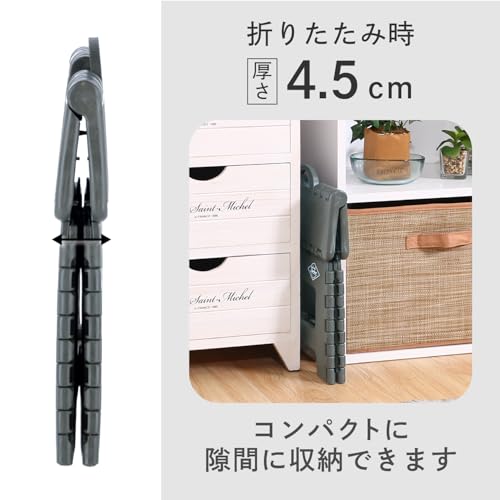 サッと広げればどこでも使える、便利な折りたたみステップスツール♪耐荷重150kgの丈夫なつくりなのでスツールだけでなく、踏み台としても安心して使えます。昇り降りしやすい高さ22cmなので、日常でのもどかしい「あと少しで手が届くのに! 」というシーンで大活躍します。折りたたむとコンパクトサイズになるので収納場所にも困りません♪※折りたたむ際は結合部やプレートの間に指を挟まないようご注意ください。ケガの原因となります。特に、乳幼児の使用は避け、手の届かない場所で使用・保管してください。※サイズに個体差がございます。