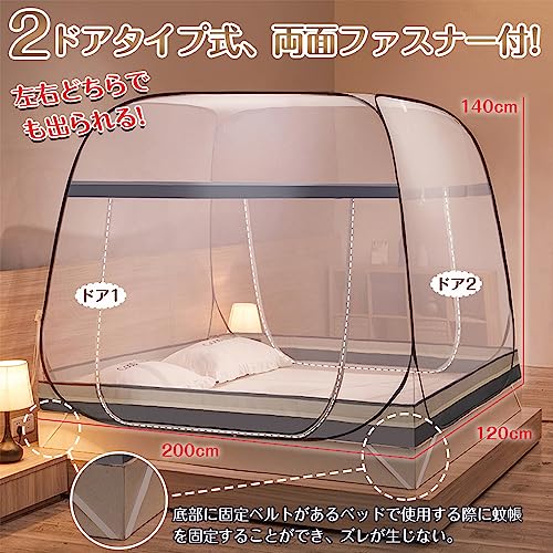 - 【素材&商品仕様&迅速な対応】本体素材:ポリエステル、ワイヤー:スチール。※100*195*105 cm仕様の蚊帳は1ドアタイプ式、その他は2ドアタイプ式。サイズは商品展開後に測定し、誤差は1-3cmで正常な現象であります。パッケージ内容: 蚊帳本体×1、スチールリング×1、収納袋×1 日本語説明書×1。meososから購入した商品で、商品が届いた後、初期に不具合があった場合や使用後6ヶ月以内に、商品ページの「販売元」→「質問する」。メール送信後は24時間以内に返信します!そして、お客様に他社より優れたアフターサービスを提供します。