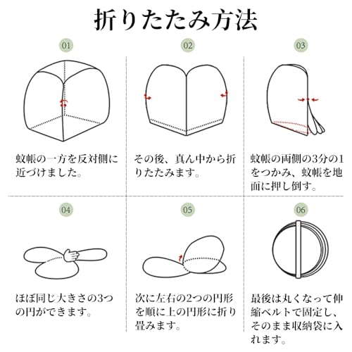 - 【折りたたみ式&収納簡単】折りたたみ式の蚊帳は、収納にも便利です。子どもも高齢者も、たった6ステップで素早く収納できます。収納袋が付属していて、取り出したり収納したりするのが楽で、来年の夏も続けて使うことができます。蚊帳の扉のファスナーは両面式で、入ったり外に出たりするのに便利です。