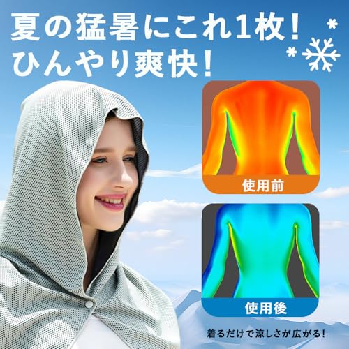 冷感 フード タオル 2枚組 冷感タオル ひんやり 冷感アイスポンチョ 冷却 暑さ対策グッズ 冷感ポンチョ 涼しい 熱中症対策 速乾 軽量 吸汗 瞬間冷却 冷感持続 スポーツ 部活 登山 冷やす 日焼け ひんやりグッズ (グレー)