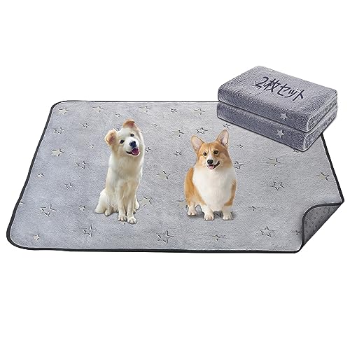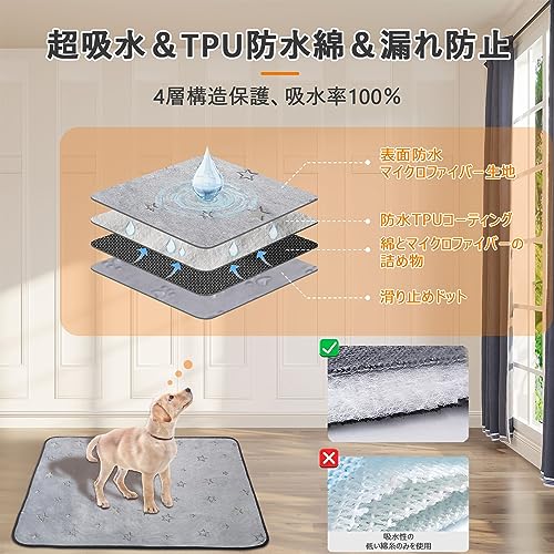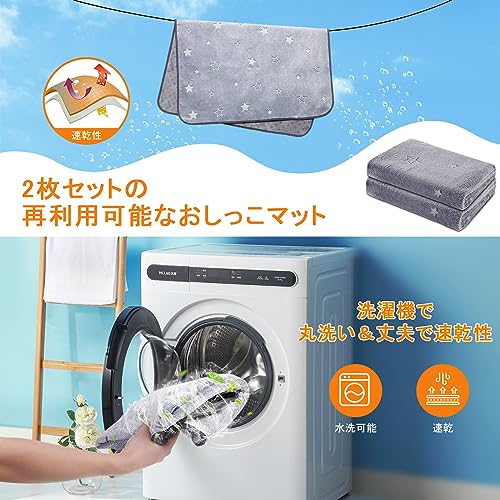LOOBANI 洗えるペットシーツ 超吸水 ペットシーツ 洗える 滑り止め おしっこマット 速乾 ペットマット 防水 漏れ防止 洗濯機で丸洗い おしゃれなデザイン 消臭 介護 エコ 噛み耐性 抗菌加工 子犬とシニア犬のトイレトレーニング おしっこマット 犬 猫用 (グレーの星柄デザイン, 46cm*61cm(2枚))