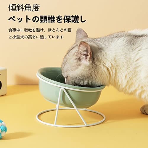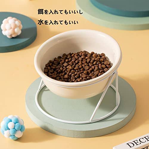 猫 食器 陶器 15度の傾斜 食べやすい 頸椎を保護する 犬 食器 餌入れ 水入れ ペット食器 猫 犬 取り外し式 ペットウォーターボトル 洗いやすい 猫 えさ 皿 (ベージュ) (ベージュ)
