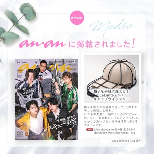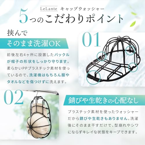 【anan掲載モデル】 LeLante キャップウォッシャー 帽子 洗濯 型崩れ防止 洗濯機 野球帽ウォッシャー 大人用 子供用 収納 吊り下げ収納 (ブラック)