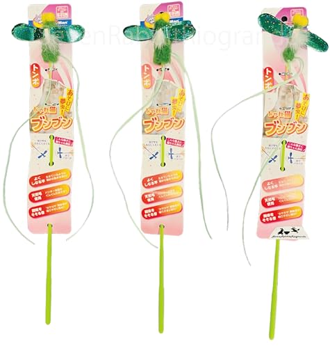 じゃれ猫ブンブン トンボ 【選べる1本~5本】 キャティーマン (CattyMan) 天然毛使用 猫じゃらし 蜻蛉のおもちゃ 釣り竿タイプの玩具 猫用 7RabbitRiogrande 【商標登録番号 第6667215】 (3本セット)