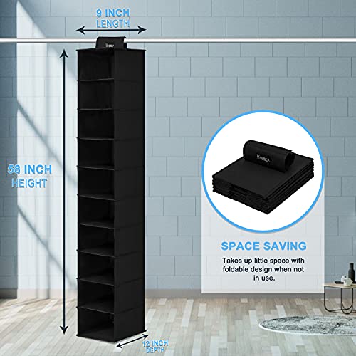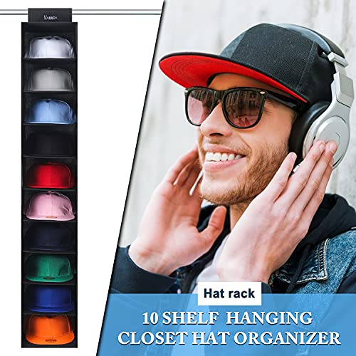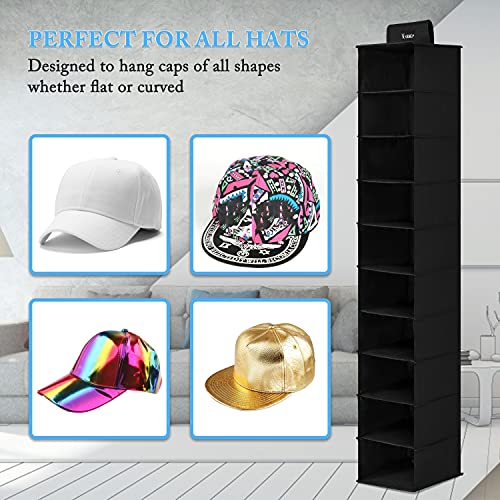 VAESIDA 帽子掛け - 10段 収納 吊り下げ ハンガー 大容量 帽子かけ 折りたたみ 多機能 野球帽ラック スタンド 省スペース クローゼット 幅23×奥行30×高さ150cm (黒)